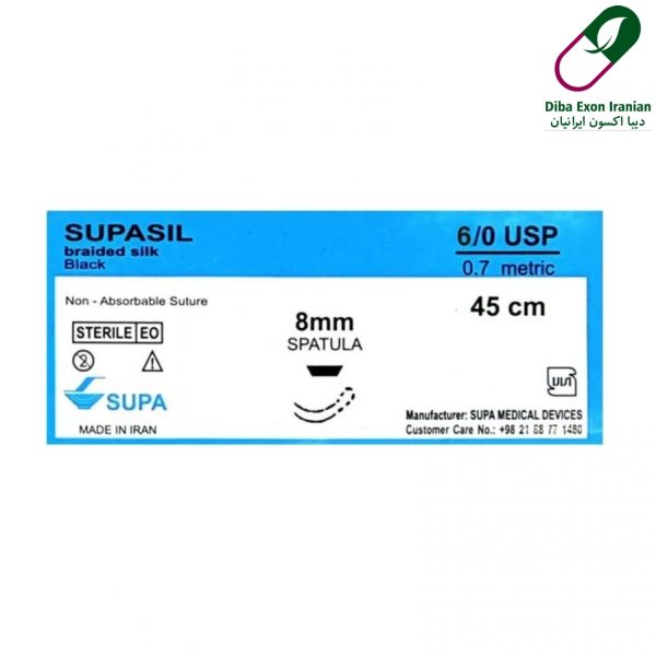 نخ جراحی سوپا سیلک 6/0 (6.0) اسپاچولا (دو سوزنه) سوزن 8 (بسته 12 عددی)