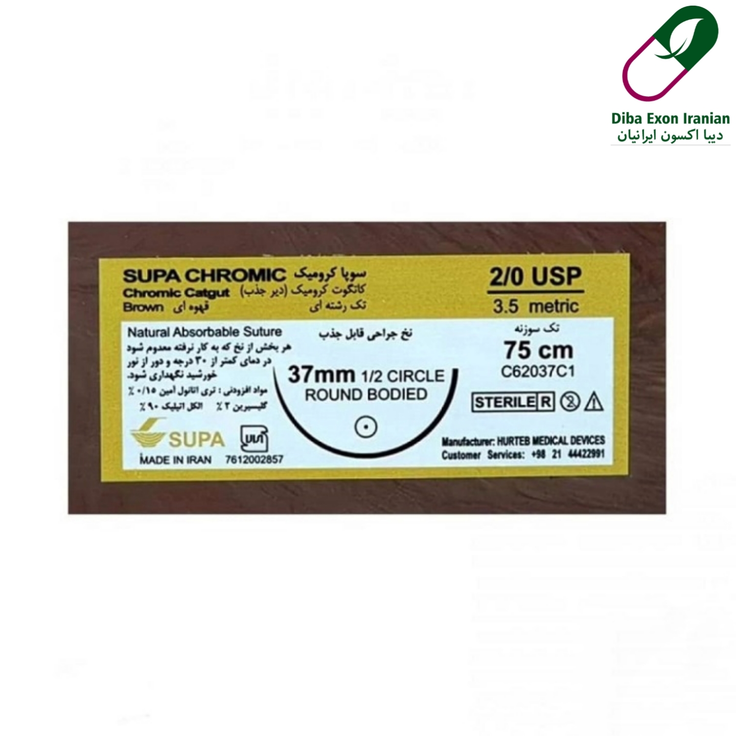 نخ جراحی سوپا کرومیک 2/0(2.0) راند سوزن 37
