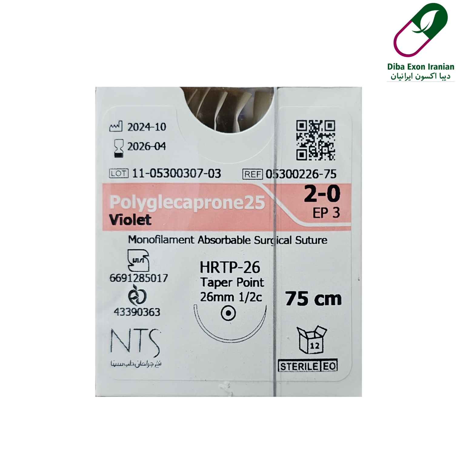 نخ جراحی NTS مونوکریل 3.0 کات سوزن 26